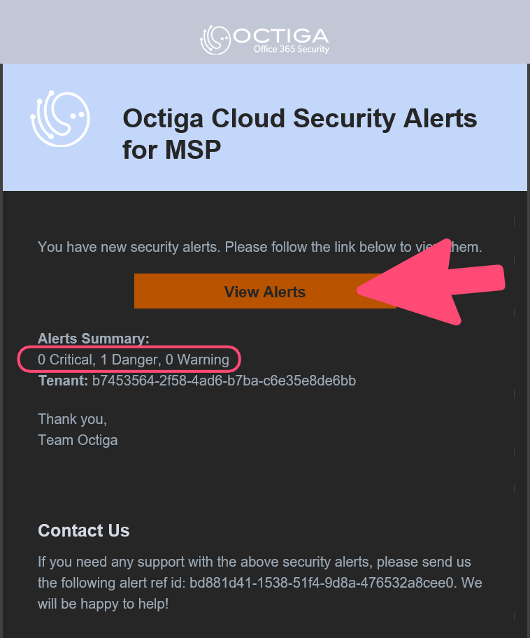 Selected users are notified of alerts when an alert is generated by Octiga