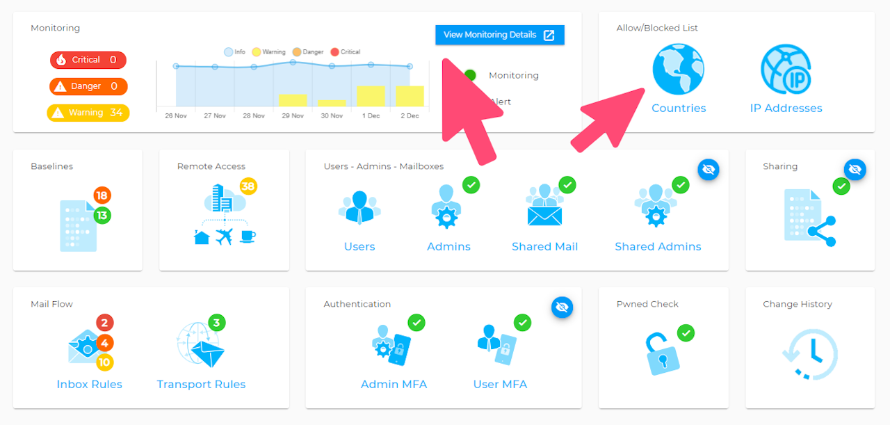 The country region tool can be accessed in a number of different flows, however the most straightforward is to open it from the main client dashboard or else through the monitoring dashboard