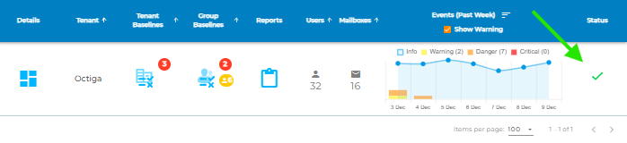 Once all service checks are finalized in Octiga, a green checkmark will appear next to the tenant status.