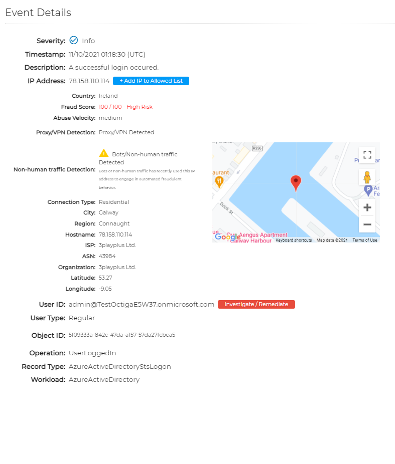 - Fraud Score - OCtiga use an up to date third party to identify potentially risky networks and network locations