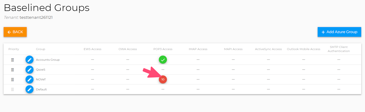 - Click on the Baselines Button for that tenant